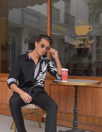 COOFANDY Men's Print Button Down Dress Shirt Fashion Long Sleeve Casual Shirts