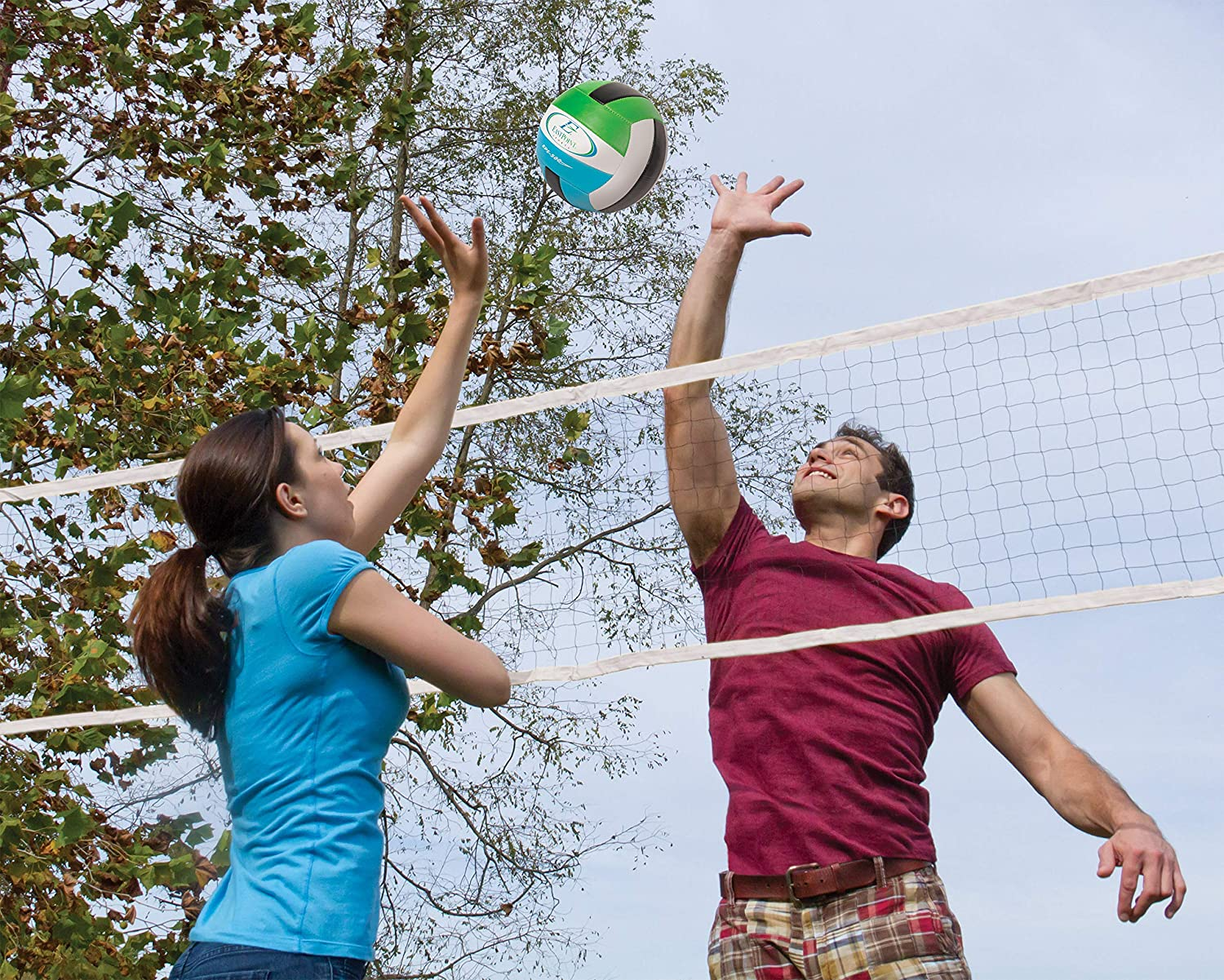 • INCLUDES EVERYTHING YOU NEED TO PLAY: 1 official size volleyball, 4 badminton rackets, 2 badminton shuttlecocks, 4 ground stakes and 1 carry bag for portability and storage