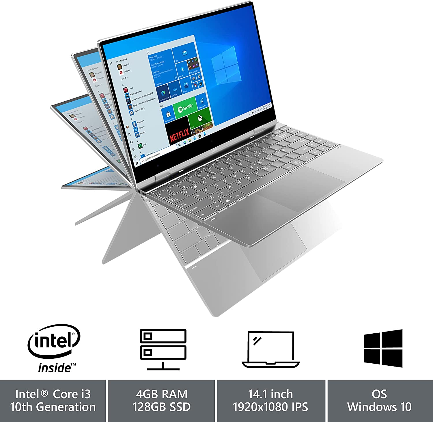 GeoFlex 340 14.1" Convertible Laptop with Touch Screen Windows 10 Intel Core i3 4GB RAM 128GB SSD