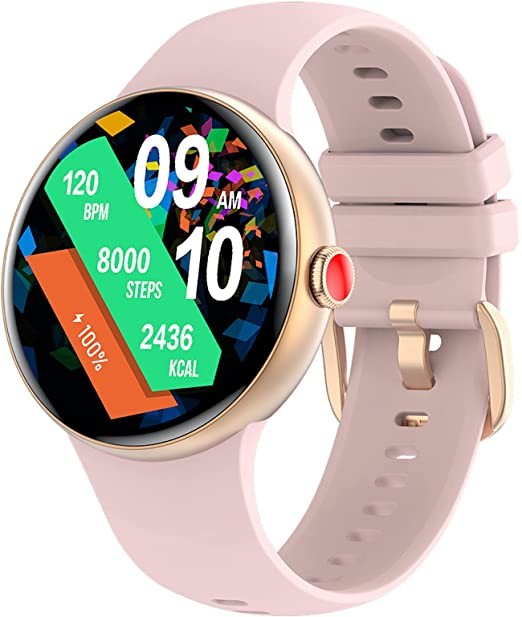 HOAIYO AMOLED Smartwatch, Activity Tracker for Fitness and Health, 3 ATM Waterproof, Monitor SpO2, Heart Rate, Sleep, Stress for Men and Women for Andriod iOS (Pink, 1.2" AMOLED)