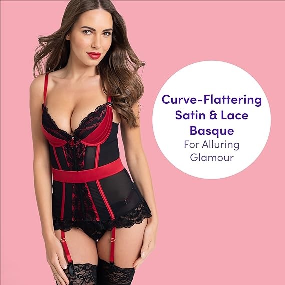 • CURVE-FLATTERING SATIN AND LACE BASQUE FOR ALLURING GLAMOUR: Made from ruby-red satin and tantalising black lace, this Red Empress basque is all you need for curve-loving glamour in the boudoir.