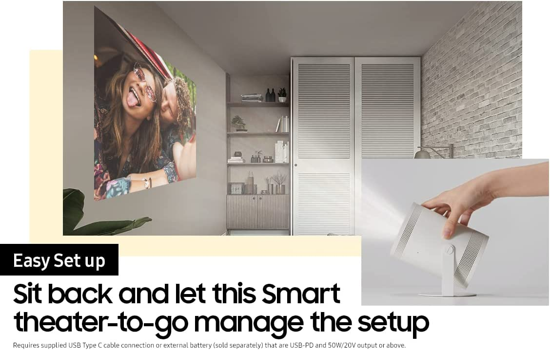 SAMSUNG 30”- 100” The Freestyle FHD HDR Smart Portable Projector for Indoor and Outdoor Home Theater Big Screen Experience with Premium 360 Sound with Alexa Built-In (SP-LSP3BLAXZA, 2022 Model)