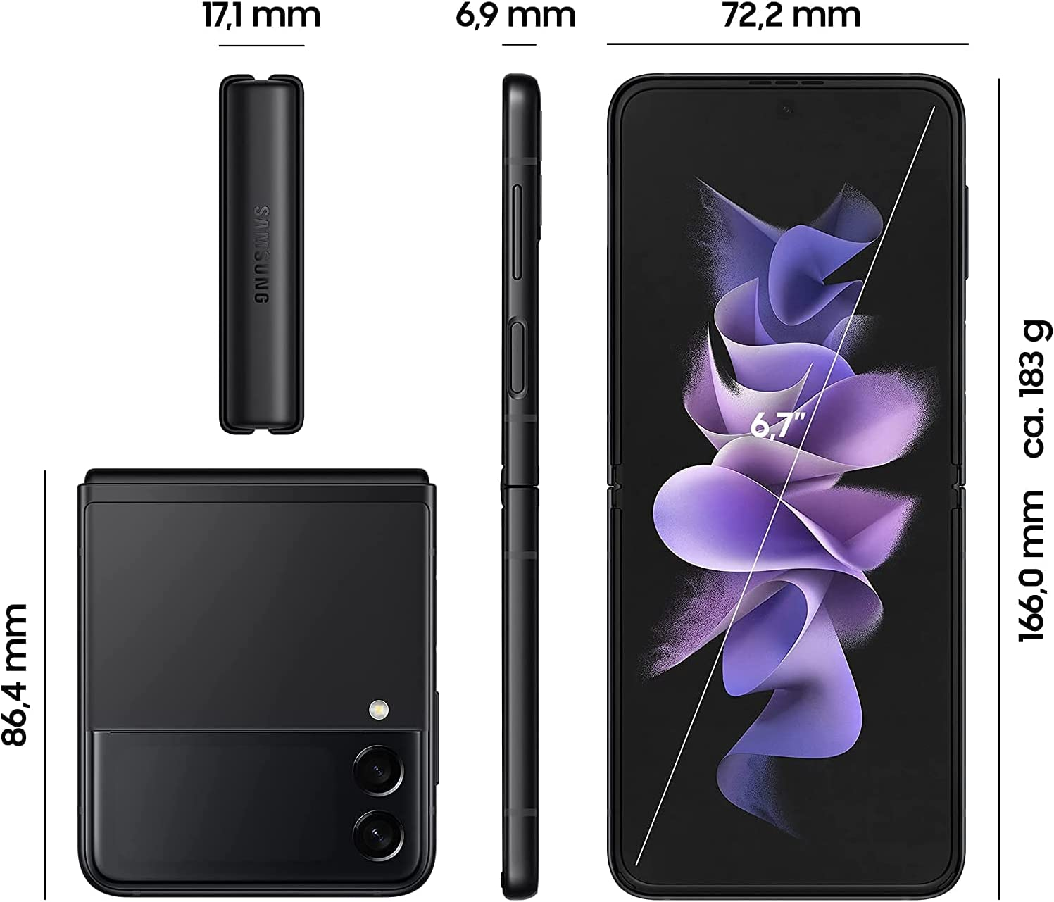 Samsung Samsung Folding Phone Galaxy Z Flip3 5G (17.03 cm), No Contract Foldable Phone, 1.9" Large Front Screen, 128GB RAM, 8GB RAM, Black