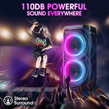 W-KING 100W Bluetooth Speaker V5.3, Portable IPX6 Waterproof Party Speaker Loud with Deep Bass/110dB Huge Sound/DSP, Karaoke Outdoor Speaker, with Light/Mic and Guitar Port/ECHO/USB Port/Adapter